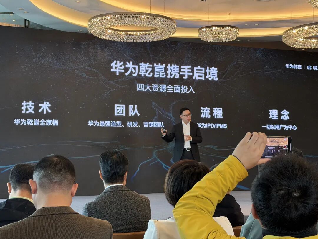 2025 年起,华为乾崑派遣了数百名员工驻扎启境,与启境员工在同个物理空间里办公、共同决策。在产品研发团队的构成上,华为乾崑员工与启境员工几乎是 1:1 配比。华为智能汽车解决方案 BU CEO 靳玉志也曾透露,他每月都会到广汽好几次。从启境官宣品牌名称以来,他也几乎每个月都发微博宣传启境。